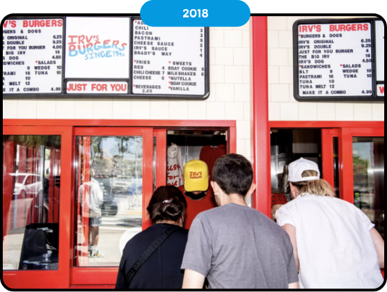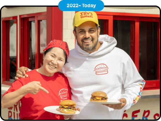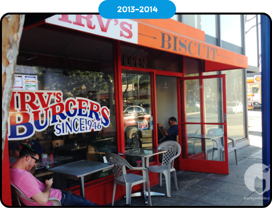 Lawrence Longo reopens the beloved Irv’s Burgers in a new space just down the block from the 2nd location, with refreshed branding but the same signature Sonia doodles and slogan. Lawrence opens a second location in Mid City, a third in Malibu.